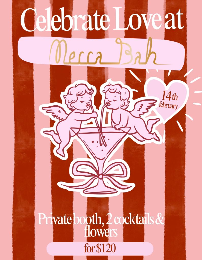Do you have plans for Valentine’s Day? Surprise your loved one with a romantic date at Mecca Bah. Reserve a table for two and treat that special person to a succulent meal for $120 paired with our extensive drinks list.